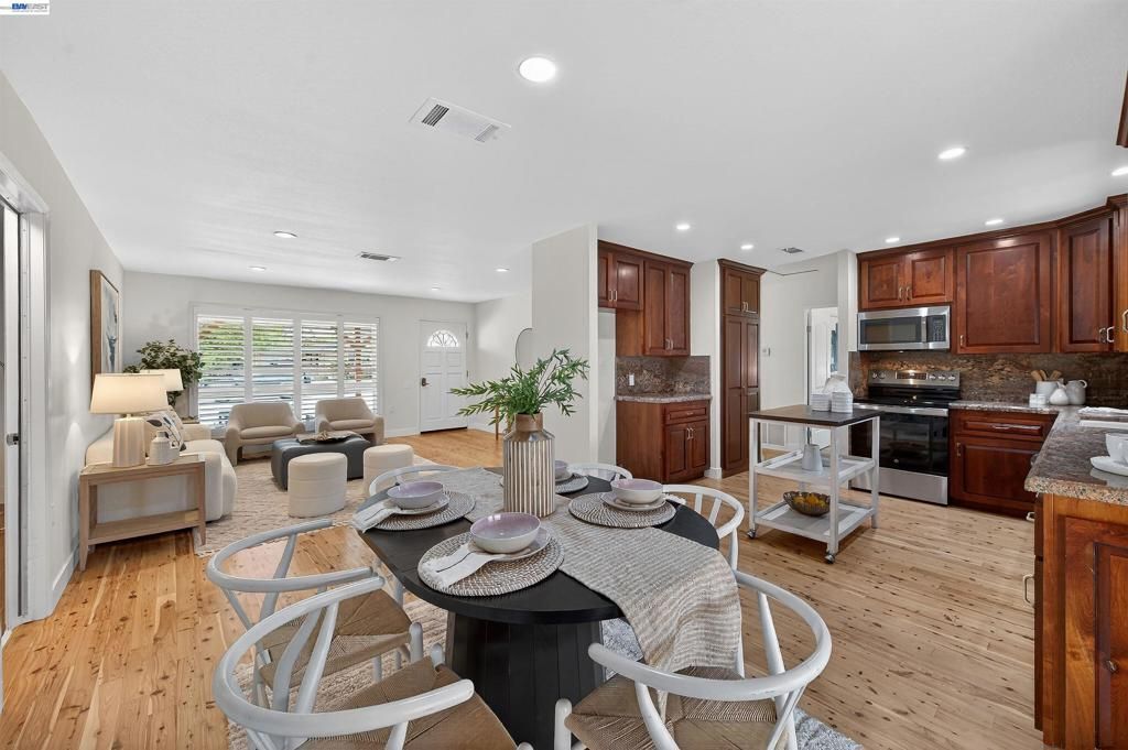 Welcome to this beautifully updated home nestled on an exceptionally quiet and peaceful street. From the moment you step inside, youre greeted by a bright & open floor-plan, stunning hardwood floors, plantation shutters, new paint, newer dual pane windows and upgraded recessed lighting throughout. The fully remodeled kitchen features custom cabinetry, elegant stone countertops, and stainless steel appliances. The primary suite includes an oversized closet and a tastefully upgraded en-suite bathroom complete with a walk-in shower with stone shower walls, and sleek seamless glass doors. The attached garage is thoughtfully designed as a versatile multi-purpose space with custom built-in cabinetry, ceiling fans, laundry and custom utility sink or dog washing station. Step outside to a large, usable backyard featuring a custom built overhang with lighting, storage shed and newer fencing. This is a must-see home offering incredible value, thoughtful upgrades, and a serene setting you wont want to miss! Call us today for more details or to schedule a time to view!