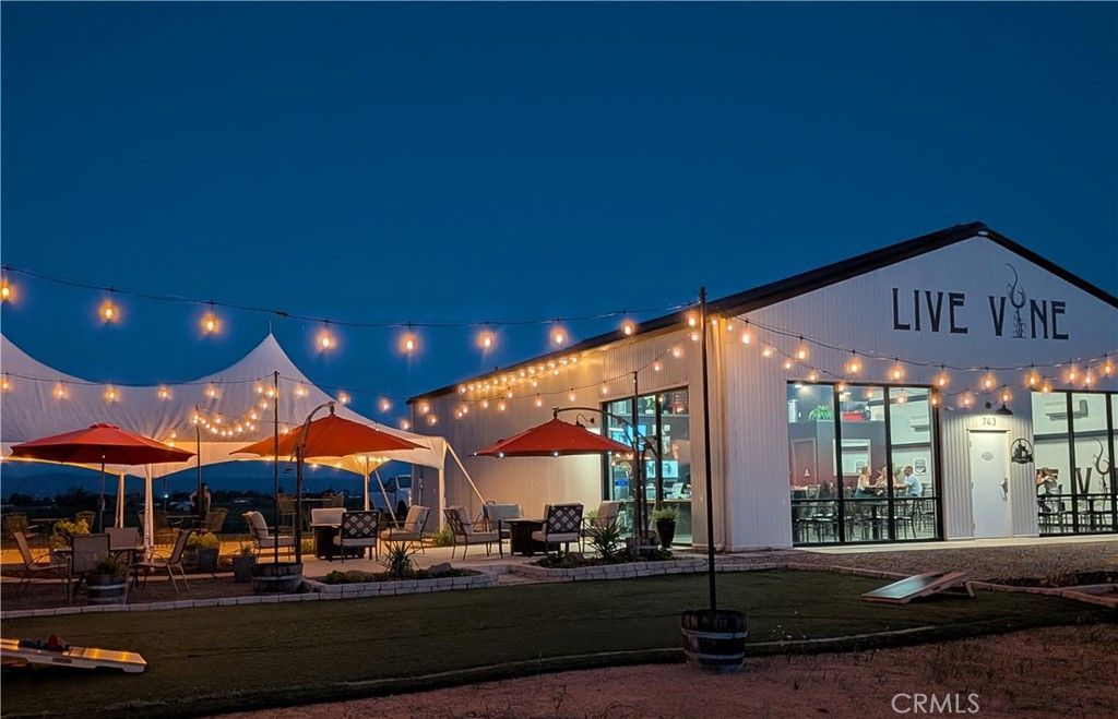 Discover the rarest of winery gems in Butte County. LIVE VINE is a fully operational, boutique winery offering a serene ground-to-bottle experience. In addition to on site winery operations, the tasting room serves a variety of food and has become known as one of the best pizza offerings in the county. Positioned in a tranquil country setting, it is the only winery in Oroville featuring stunning lakeside views of the Thermalito Afterbay. The newly completed (2024) tasting room is strategically located right off highways 162 and 99 providing easy access.